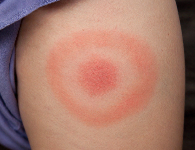 Najvažniji znak je: Erithema migrans – crvenilo koje se širi i ima svetliji centar (izgled mete)